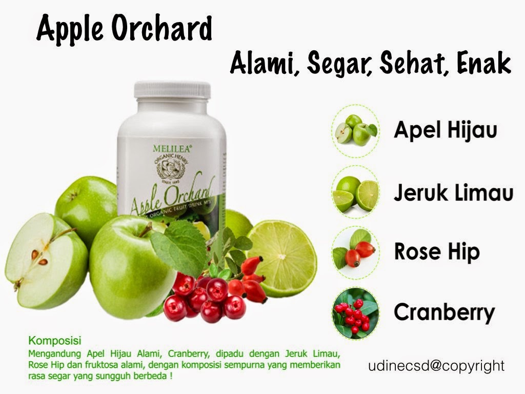 “Hasil dari suatu riset yang di lakukan di Amerika menyatakan bahwa Dari 297 bahan makanan alami di seluruh Amerika yang bisa memberikan efek anti Oxidant, maka produk MELILEA Organic Henry Juice Apple Orchad meletakkan dirinya pada posisi no.2 yang teratas di Amerika Serikat.”